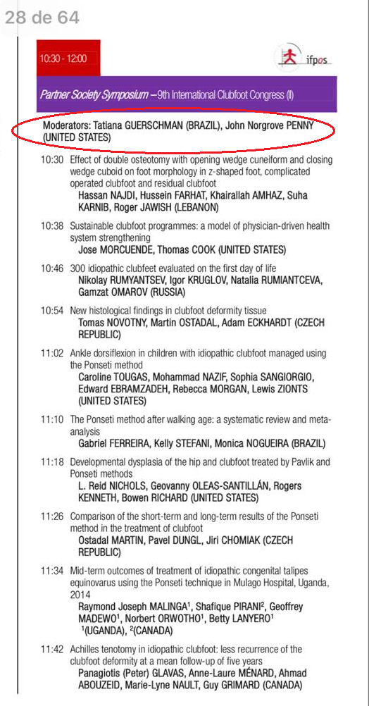 Convidada pelo Dr Mathew Dobbs, moderou com muita honra uma sessão no simpósio internacional de pé torto congênito ao lado do Dr John Penny dos Estados Unidos